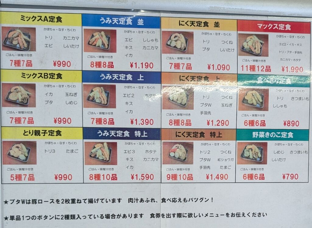 天坊では天ぷらの定食がお得なお値段で食べられます。